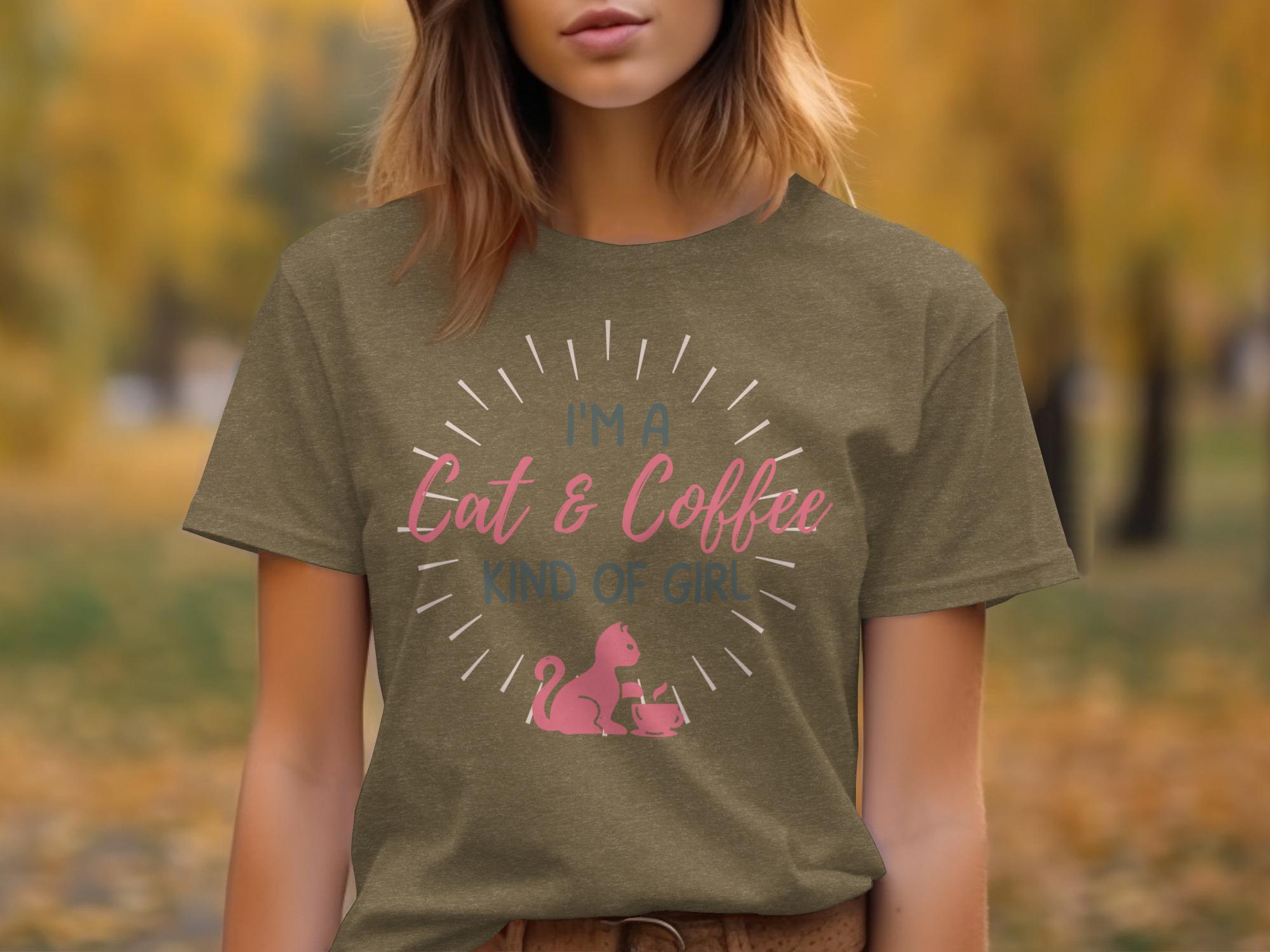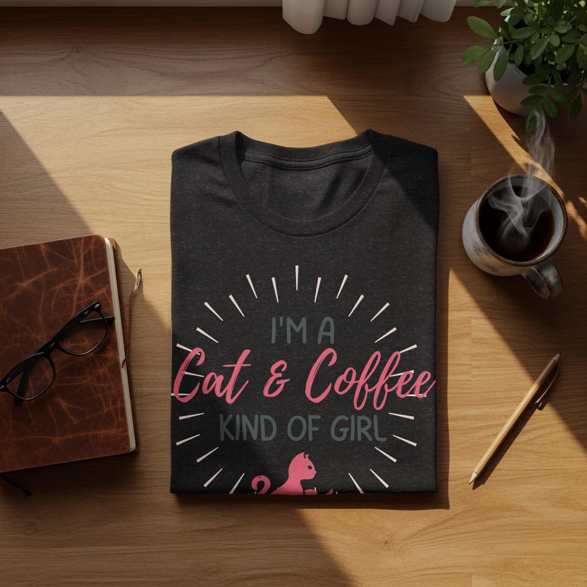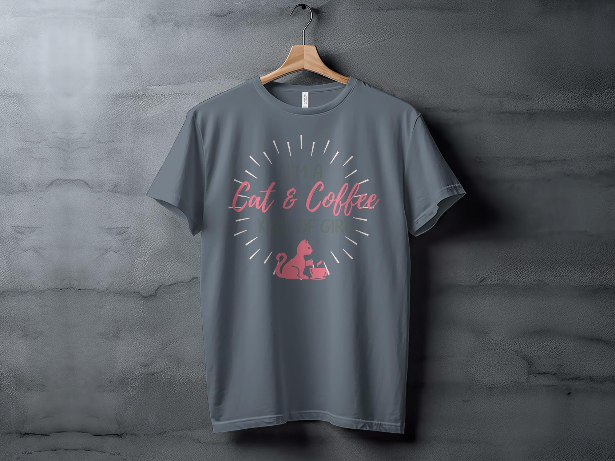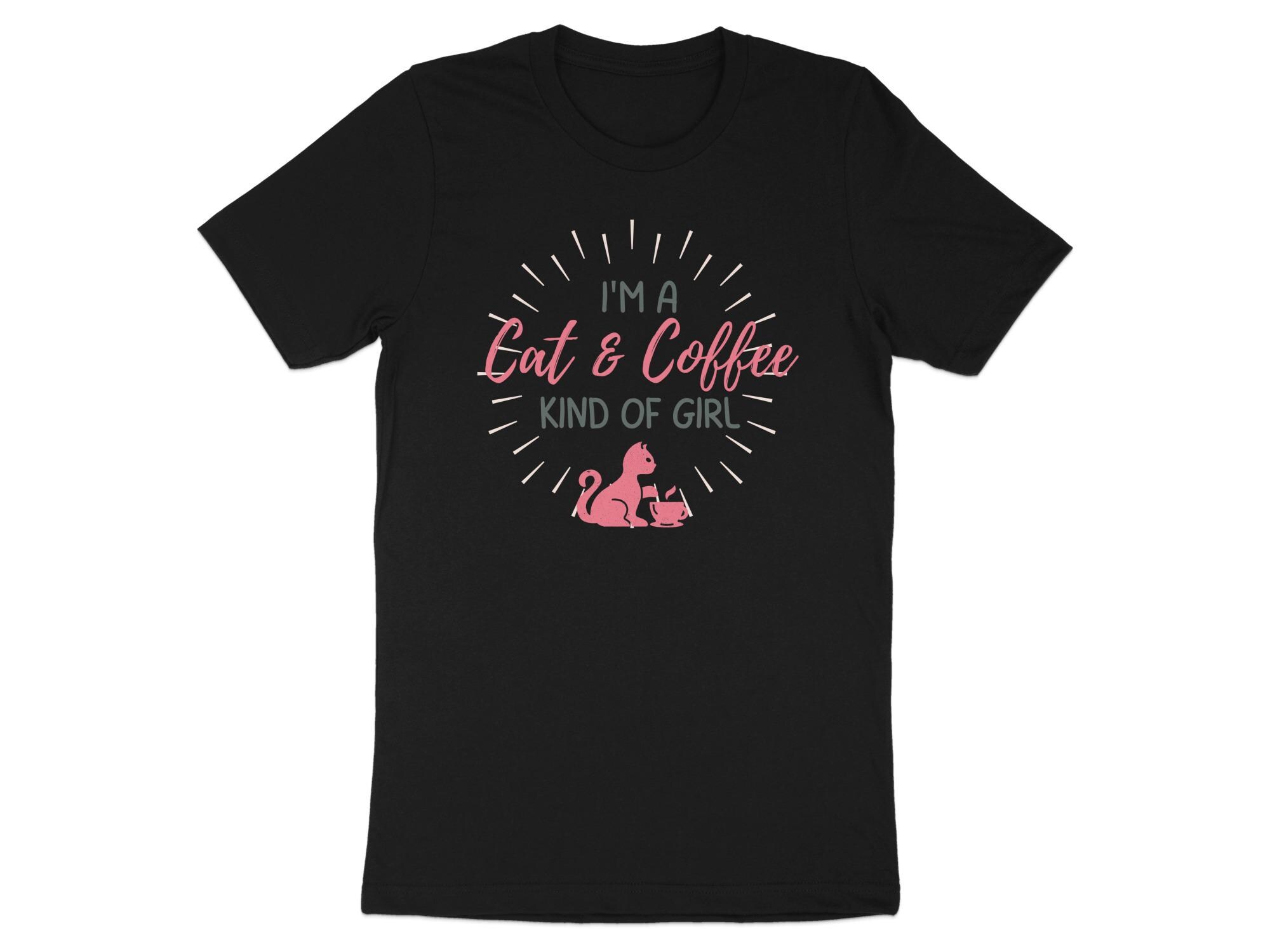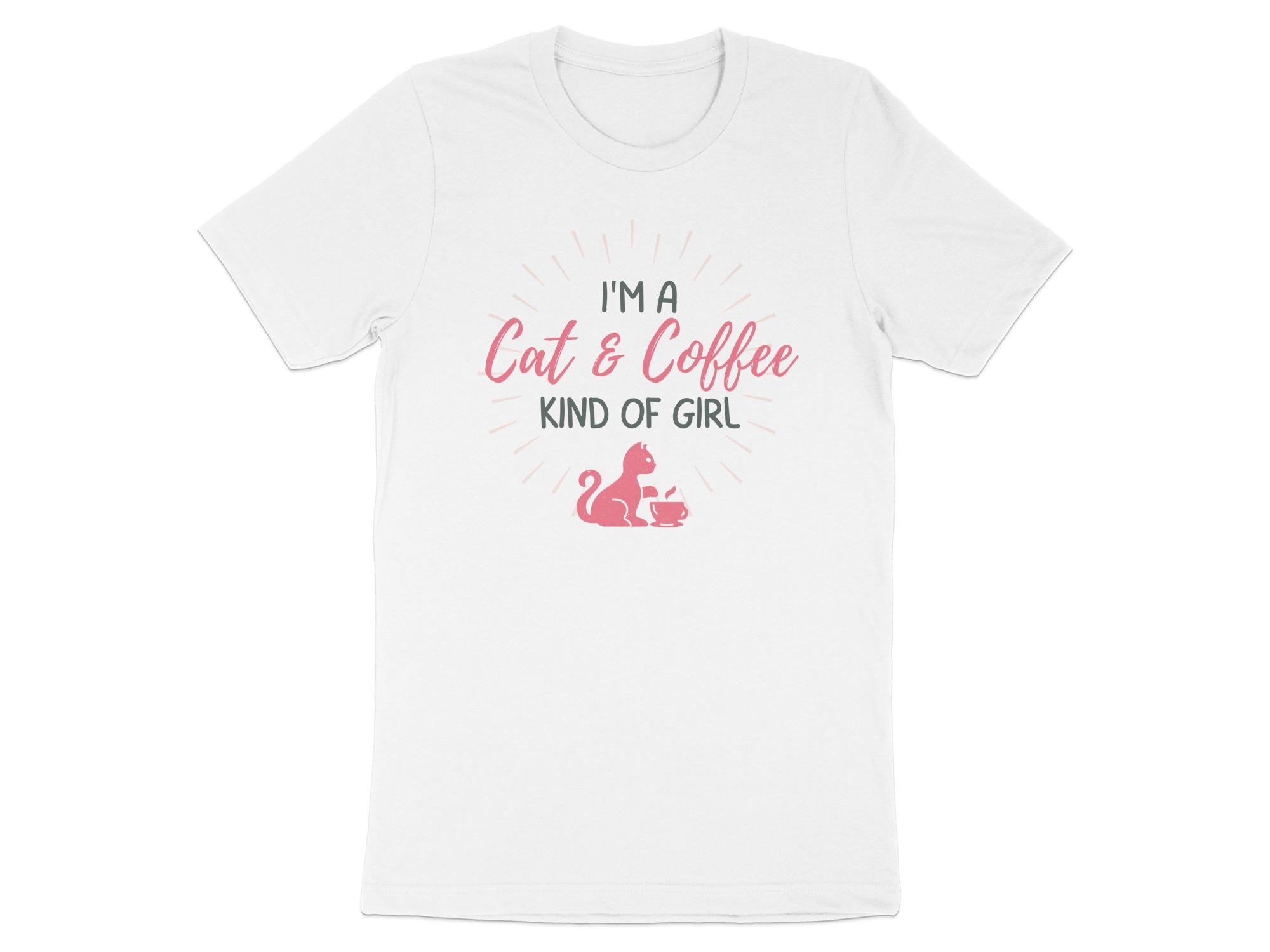 Show your love for cats and coffee with this adorable T-Shirt! This design features a cute kitten next to a steaming cup of coffee, perfect for any cat mom or coffee enthusiast.