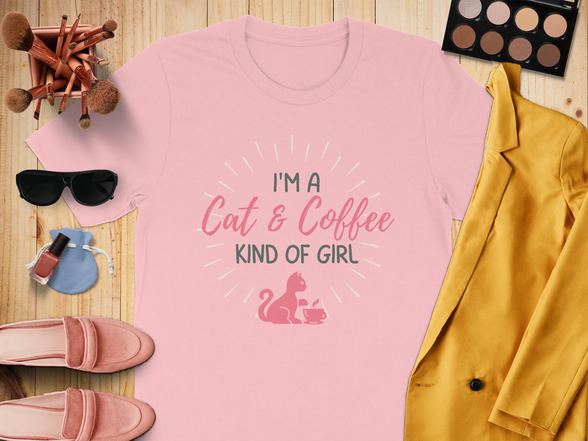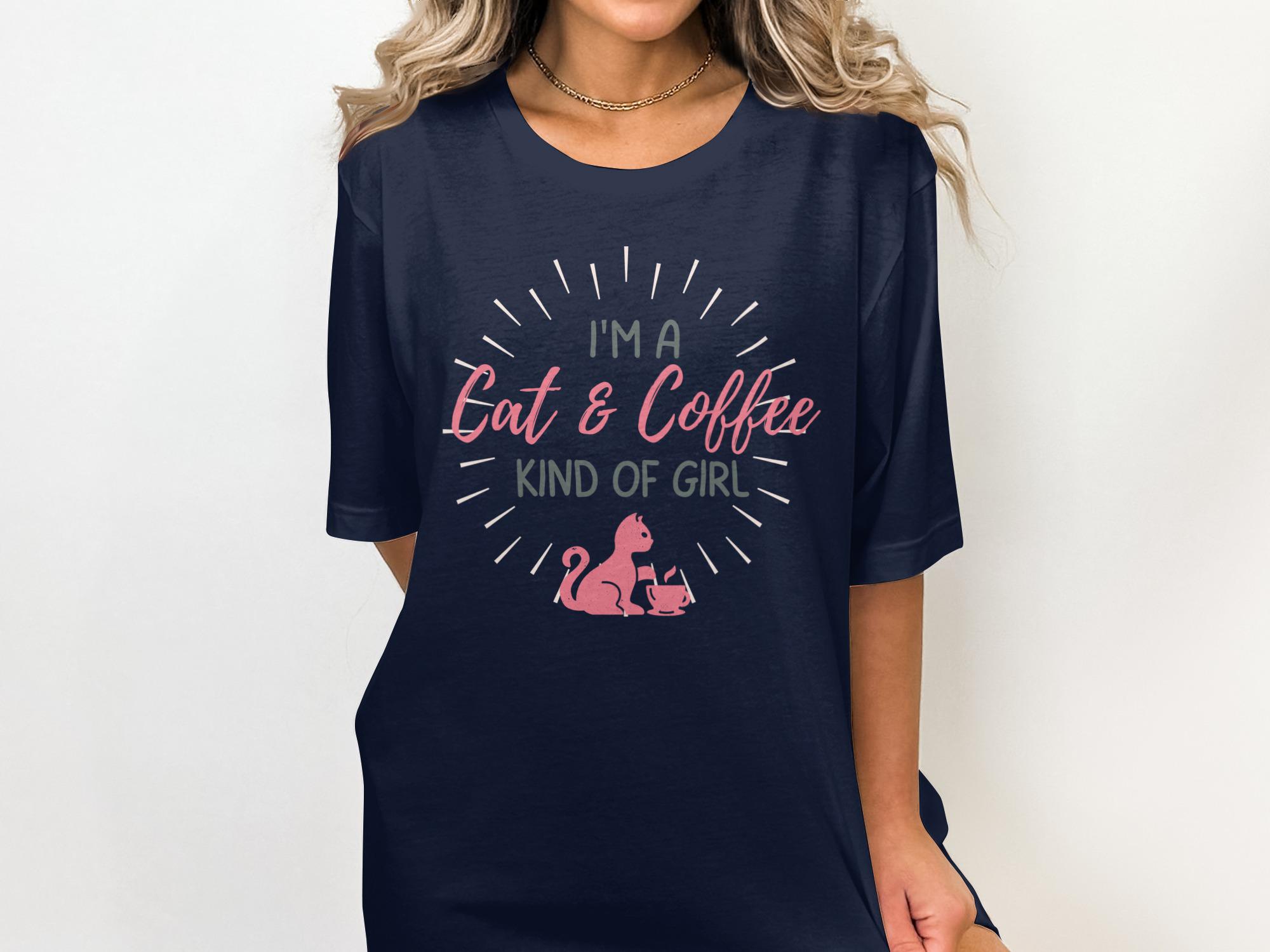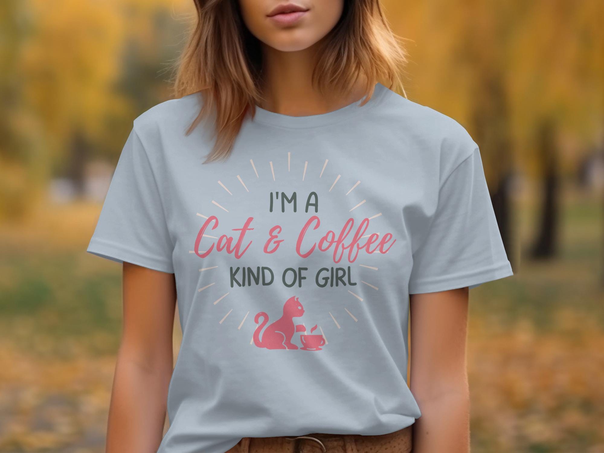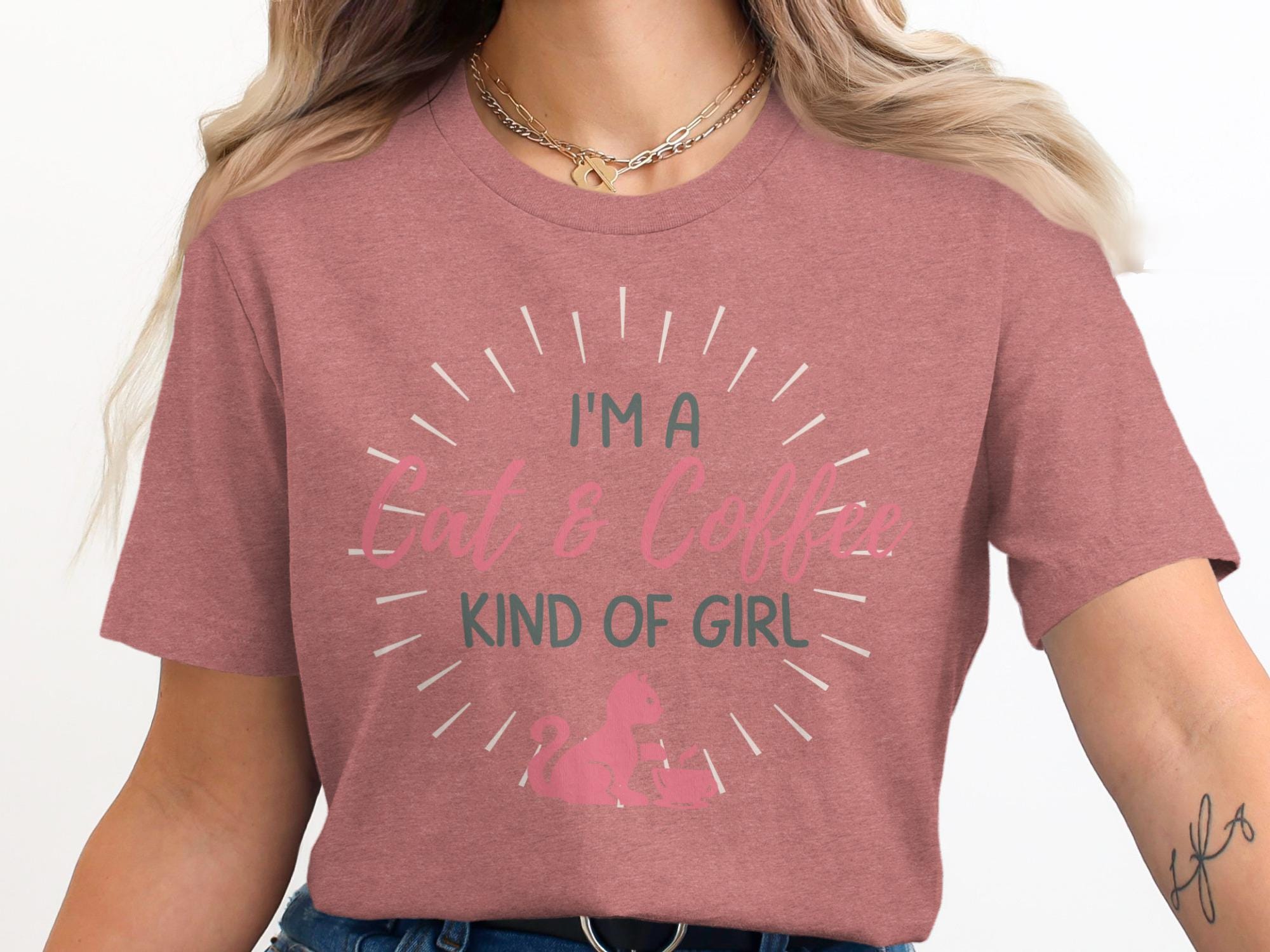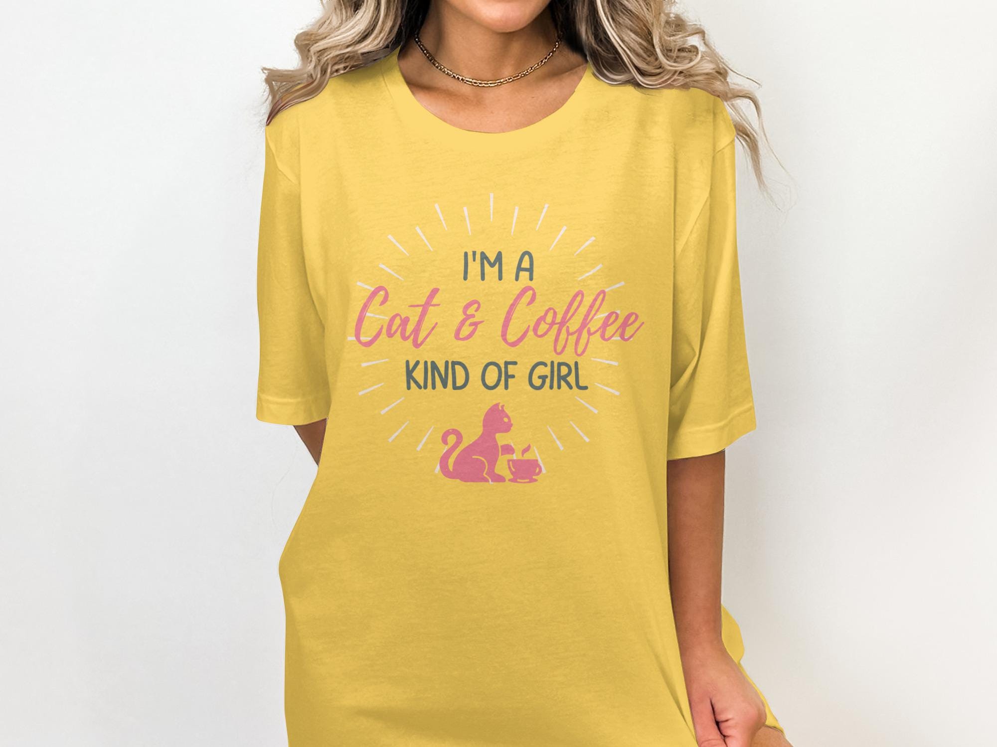 Show your love for cats and coffee with this adorable T-Shirt! This design features a cute kitten next to a steaming cup of coffee, perfect for any cat mom or coffee enthusiast.