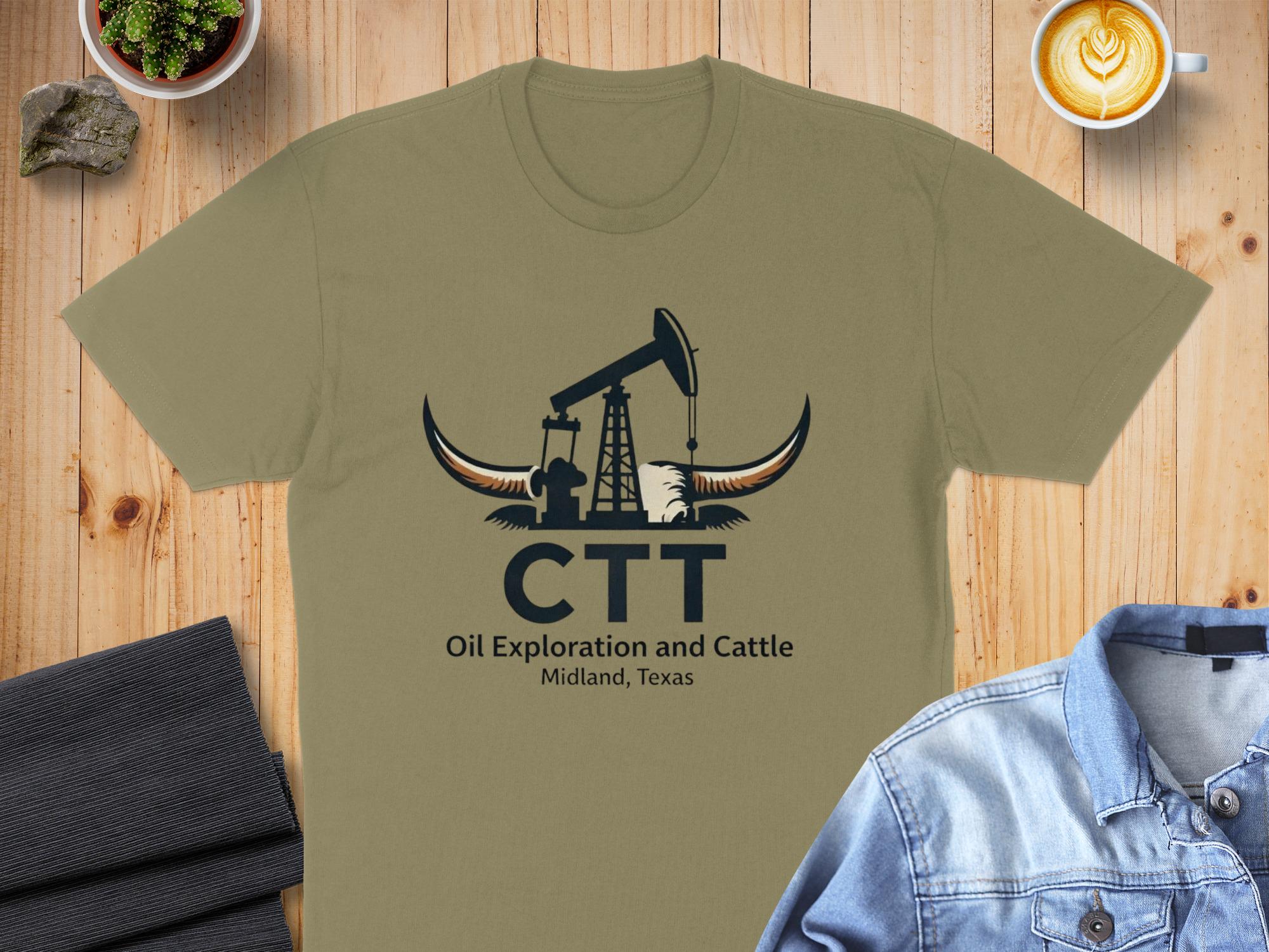 This design features a distinctive logo combining an oil derrick, longhorn horns, and the letters CTT. The design is a great conversation starter and a unique way to display your fandom.